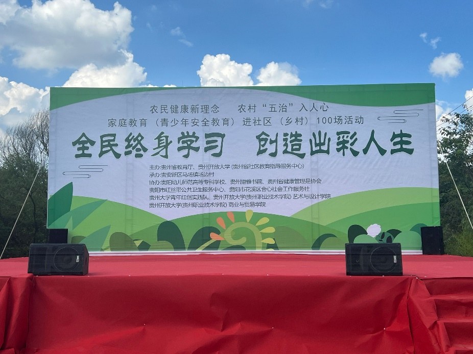 为构建服务全民终身学习的教育体系,形成全民学习、终身学习的学习型社会,促进人的全面发展,让人民群众在日常生活中享有更多学习的机会、丰富便捷的学习资源、更高质量的教育服务。2023年9月9日由贵州开放大学、贵州省社区教育指导服务中心主办,贵阳幼儿师范高等专科学校、贵州播雅书院、贵安新区马场镇场边村、贵阳市花溪区合心社会工作服务社、贵阳市红丝带公共卫生服务中心、贵州省健康管理师协会、贵州开放大学(贵州职业技术学院)艺术与设计学院、贵州开放大学(贵州职业技术学院)商业与贸易学院、贵州大学青年红创实践队协办,主题为“全民终身学习 创造出彩人生”——家庭教育(青少年安全教育)进社区活动在贵安新区马场镇举行。