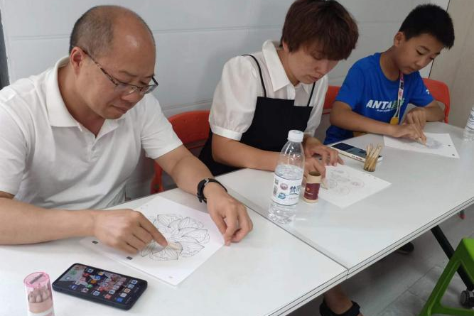 活动中,老师从青春期孩子的特点、常见的错误沟通方式、曼陀罗的起源等方面向参与人员进行了详细的讲解。正式绘画前,在音乐环绕的轻松氛围中,老师带领大家进行冥想,让大家在放松的状态下将思绪集中于当下,接纳此刻的情绪想法。随后,老师鼓励孩子和家长们用手中的铅笔跟随自我的感觉创作心中的“曼陀罗”。绘画完成后,老师对孩子们的作品做了专业的心理分析,并为每一个家庭给出提升亲子关系的建议。