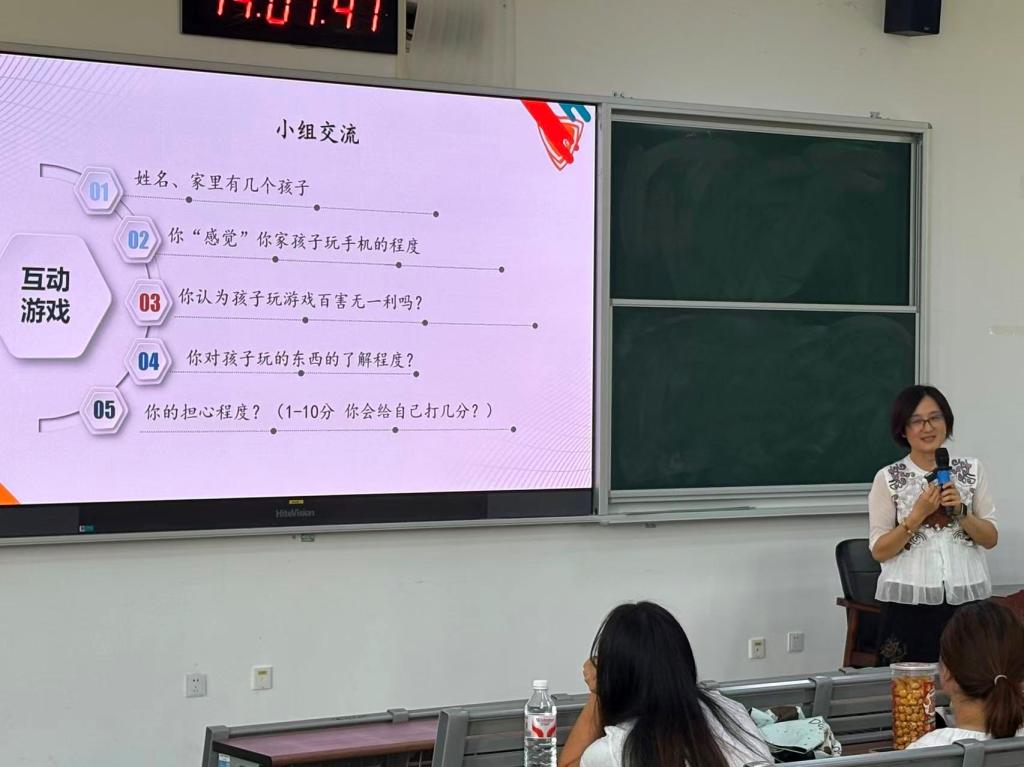 荣光副教授以《脱“瘾”而出,拒绝躺“屏”》为题,结合真实案例与互动研讨,探讨青少年手机使用问题,引导家长树立科学教育理念,助力孩子健康成长。