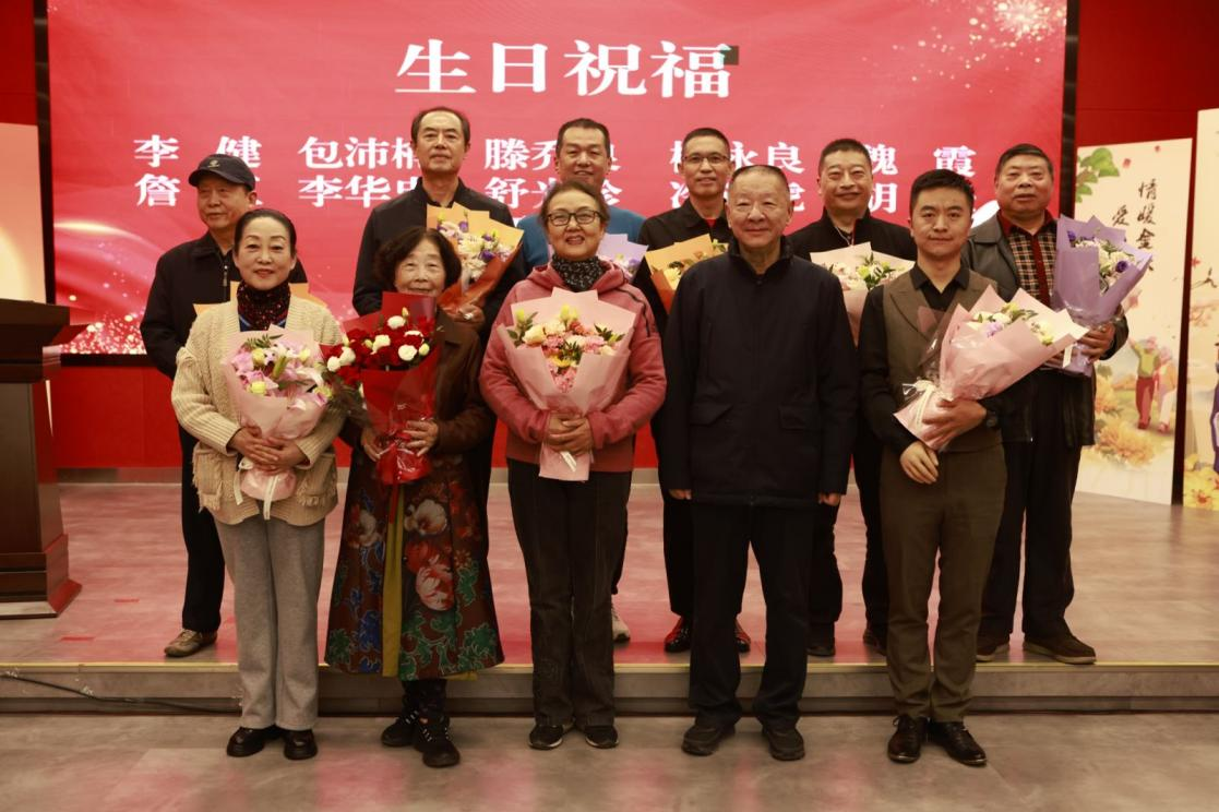 在热烈的掌声中,刘晓渝与周勇为过生日的学员们送上鲜花。
