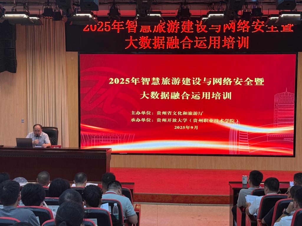 为进一步推动文化旅游与数字经济深度融合,促进景区数字化、网络化和智能化发展,筑牢网络安全防线,提升文旅行业从业人员网络安全和管理水平。2025年9月5日,由贵州省文化和旅游厅主办,贵州开放大学(贵州职业技术学院)协办的2025年智慧旅游建设与网络安全暨大数据融合运用培训圆满结束,此次培训地点在我校云潭南路校区图书馆二楼多功能报告厅,培训时间为2025年9月2日到9月5日,共计103名学员参训。