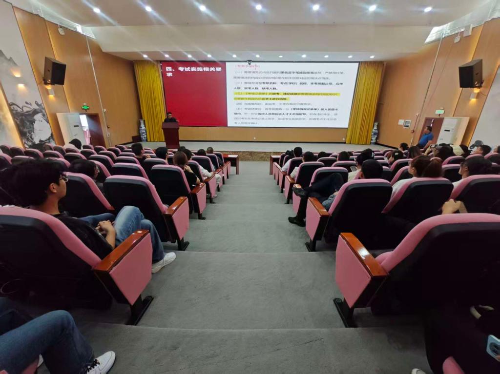 考试前一天,继续教育学院进行线下考前培训会,增强考试工作的保密意识、政治意识,组织考务工作人员及监考老师,认真学习考务工作要点、监考人员职责、监考工作程序等有关内容,严格按工作程序实施考试。