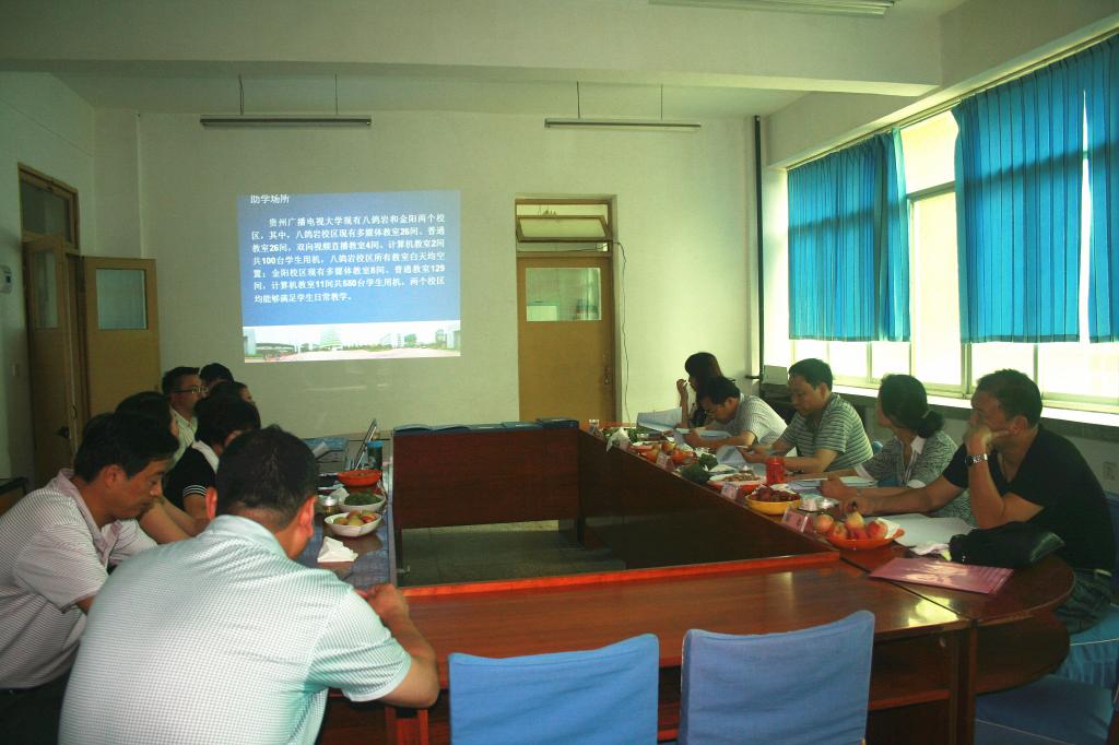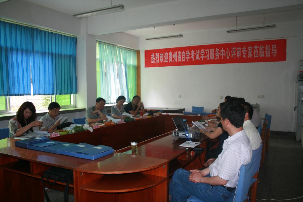 根据贵州省考试院“黔招考自[2012]6号《贵州省招生考试院关于开展”省高等教育自学考试学习服务中心“评审工作的通知》要求,7月3日下午,贵州省招生考试院田军副院长一行5人到我校开展“贵州省高等教育自学考试学习中心”评审工作。王文瑾院长授学校委托代表学校对评审组的到来表示热烈的欢迎,并简要介绍我学院开展高等教育自学考试工作以来的基本情况。之后,由陈妤茜副院长向专家组汇报了我院自学考试助学工作的具体情况。