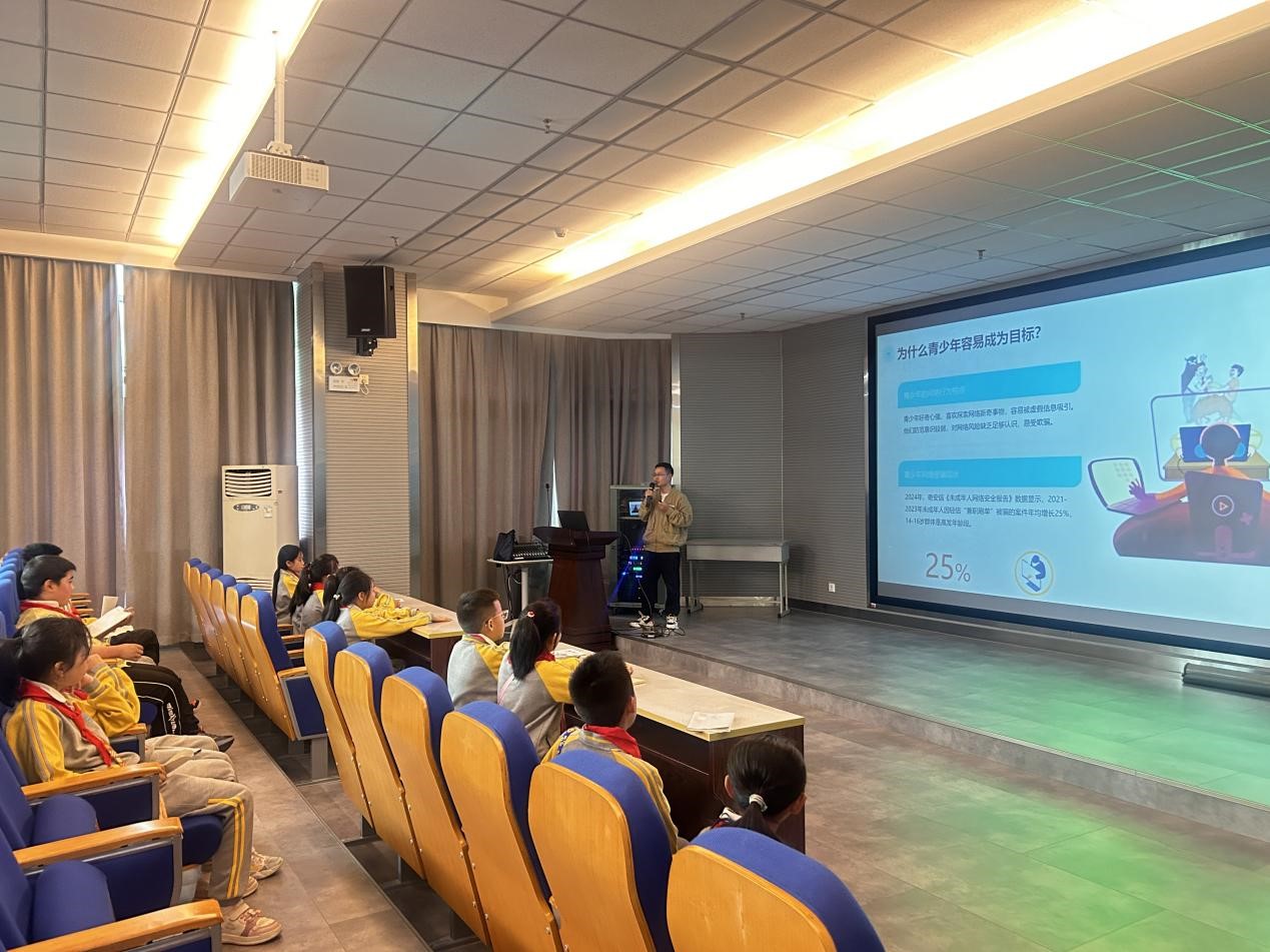 在基地讲解员的引导下,同学们依次参观了“国家网络安全”、“办公与校园网络安全”、“个人网络安全”、“智能家居网络安全”等主题展区。通过情景模拟互动设备,小学生们现场体验了“钓鱼邮件体验”、“键盘窃听体验”、“钓鱼邮件体验”“勒索病毒攻击体验”、“恶意手机充电桩体验”、“智能门锁破解体验”、“攻击摄像体验”等实景演示,在趣味互动中直观感受网络风险。基地特别设置的网络安全情景模拟、网络安全知识问答、网络安全小游戏体验等环节,更引发了孩子们的积极参与和热烈讨论。参观完成后,基地专业技术人员为学生们开展了以《文明上网 安全成长》为题的专题讲座,结合小学生上网行为特点,用真实案例解析个人信息保护、网络交友安全等实用知识。